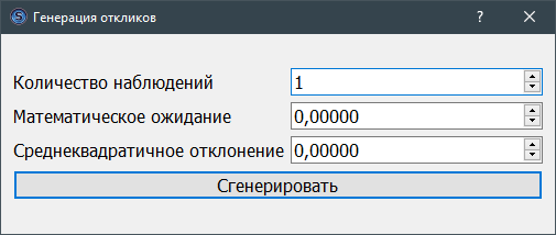 После этого окно должно закрыться и на Белом листе в Главном окне появится колонка со случайно сгенерированными данными отклика по заданным показателям.