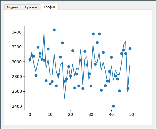 На странице График любого окна из Моделирование можно увидеть график Прогноза (график) и Отклонения (точки).
