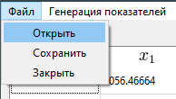 Сгенерированные значения отклика и фактора из таблицы в Главном окне можно сохранить или зугрузить из файла .txt и .csv.