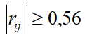 В результате корреляционного анализа вычисляется корреляционная матрица. Коэффициент корреляции (rij) характеризует взаимосвязь между величинами. Взаимосвязь считается сильной, если выполняется условие: